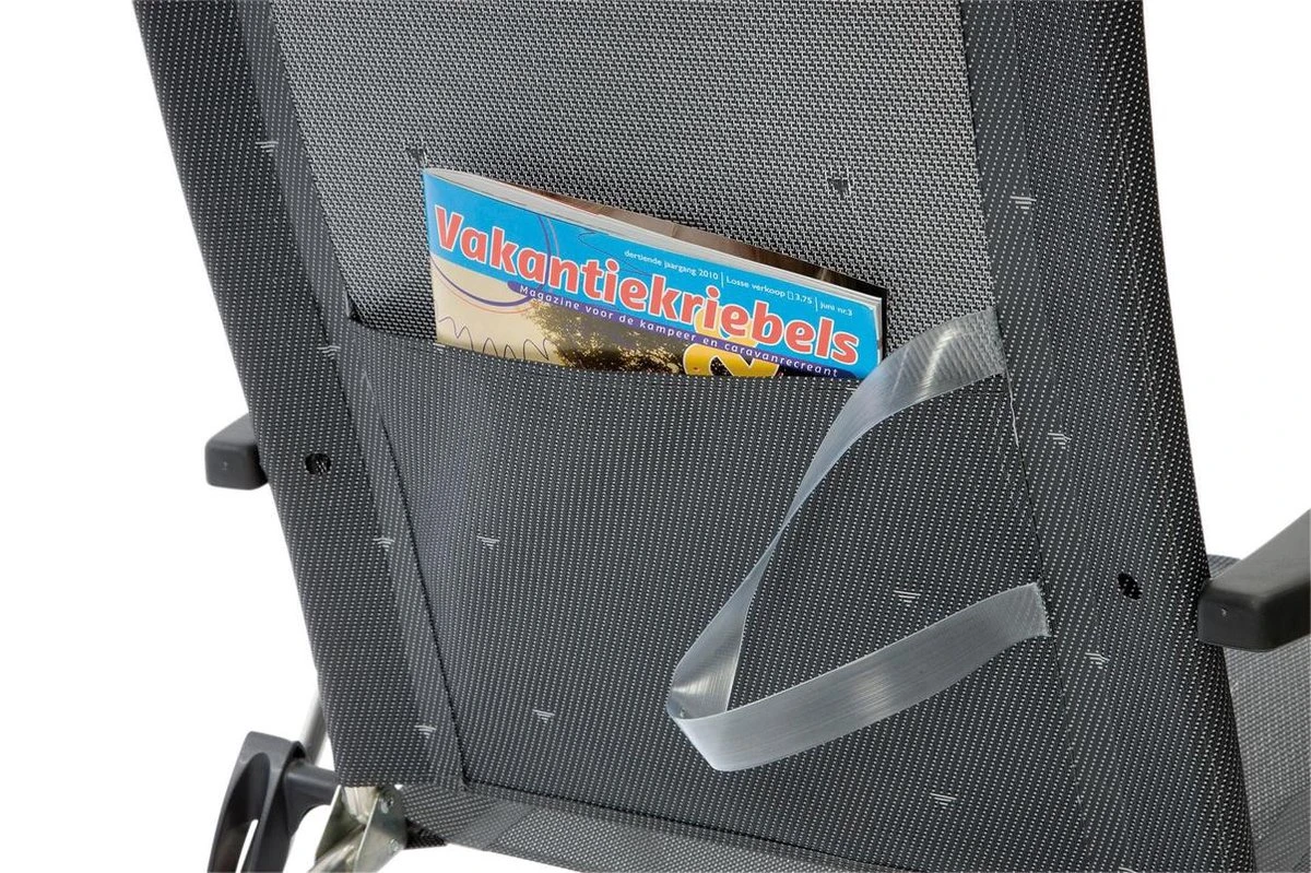 Een luxe en comfortabele donker grijze strandstoel van het merk Crespo. Deze stoel is ideaal voor gebruik op het strand, bij de tent of voor onderweg.